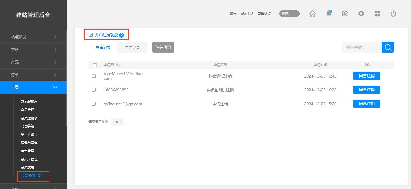 使用场景:支持小程序会员注销账号后台:会员—会员注销申请小程序效果: