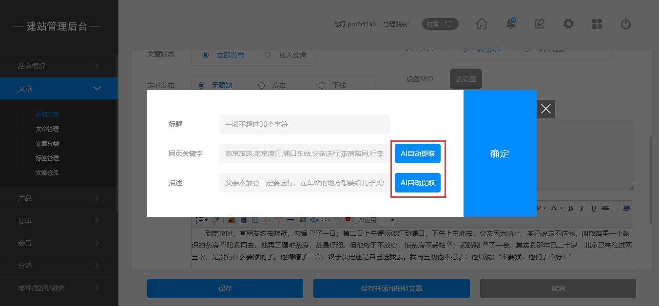 提示:必须要先填写文章详情内容,才能使用AI提取摘要功能,AI使用次数是根据免费的额度来定,超过需要单独购买